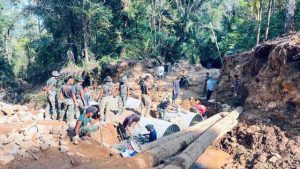 Satgas Pamtas RI–RDTL Sektor Barat Yonarhanud 2 Kostrad Laksanakan Karya Bakti Pengecoran Gereja di Desa Tubu