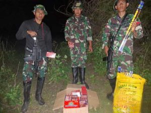 Haumenina – Satgas Pamtas RI-RDTL Sektor Barat Yonarhanud 2 Kostrad Pos Haumeniana kembali menunjukkan kesigapannya dengan berhasil menggagalkan upaya penyelundupan barang berupa petasan jenis kembang api di jalur perlintasan ilegal, Kec. Bikomi Nilulat, Kab. TTU. Minggu (7/12)