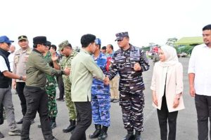 TNI AL, Belawan,- Laksamana Muda TNI Deny Septiana, S.I.P., M.A.P Komandan Komando TNI Angkatan Laut I (Kodaeral I) menyambut kedatangan Wakil Presiden Republik Indonesia Gibran Rakabuming Raka di Apron Charlie Lanud Soewondo Medan, Kamis (04/12/2025).