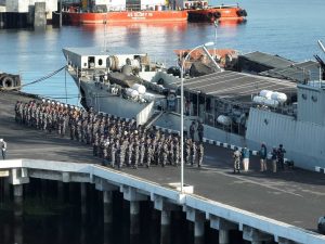 TNI AL, Dumai,- Bertempat di Dermaga TNI Angkatan Laut Bangsal Aceh, Jalan Sidodadi, Kecamatan Sungai Sembilan, Kota Dumai, Komandan Pangkalan TNI AL Dumai Kolonel Laut (P) Abdul Haris, S.E., M.M.D.S., memimpin langsung prosesi pelepasan dua Unsur Kapal Perang TNI Angkatan Laut yang akan bertolak menuju daerah operasi dalam rangka mendukung pendistribusian bantuan kemanusiaan. Dua kapal tersebut yakni KRI Teluk Lampung-540 dan KRI Teluk Gilimanuk-531, dijadwalkan bergerak pada Jumat (12/12/2025).