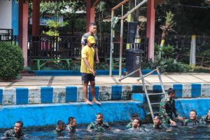 Komandan Batalyon Zeni Tempur 10 Kostrad, Letkol CZI Amito Surya Mutiara M., S.I.P., M.I.P., ikut serta melaksanakan kegiatan renang militer bersama seluruh prajurit. Kegiatan ini merupakan bagian integral dari pembinaan fisik dan profesionalisme prajurit. Renang militer, berbeda dengan renang biasa, menuntut ketahanan, kekuatan, dan keterampilan teknis di air, terutama saat menggunakan Pakaian Dinas Lapangan (PDL) dan perlengkapan. Partisipasi langsung Komandan Batalyon tidak hanya menunjukkan kepemimpinan dengan memberi contoh, tetapi juga mempererat soliditas dan kekompakan di antara seluruh anggota Yonzipur 10/JP/2 Kostrad.