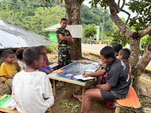TTU, Nusa Tenggara Timur – Satgas Pamtas RI–RDTL Sektor Barat Yonarhanud 2 Kostrad Pos Nelu menggelar kegiatan bimbingan belajar bagi anak-anak di Desa Sunsea, Kecamatan Naibenu, Kabupaten Timor Tengah Utara (TTU), Selasa (28/04/2026).
