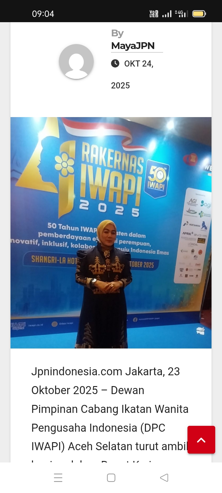 Dewan Pimpinan Cabang Ikatan Wanita Pengusaha Indonesia (DPC IWAPI) Aceh Selatan turut ambil bagian dalam Rapat Kerja Nasional (RAKERNAS) ke-4 IWAPI Tahun 2025, yang diselenggarakan dengan penuh semangat kebersamaan dan visi besar memperkuat peran perempuan pengusaha di seluruh Indonesia.