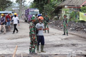 Dengan semangat gotong royong, para prajurit TNI bekerja bahu-membahu bersama masyarakat setempat menyisir area pemukiman yang tertutup abu. Kehadiran personel Yonzipur 10 tidak hanya sekadar membersihkan fisik bangunan dan jalan, tetapi juga memberikan dukungan moril bagi warga yang tengah berjuang bangkit dari bencana alam ini.