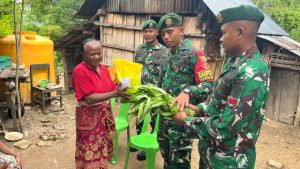 Napan – Satgas pamtas RI-RDTL Sektor Barat Yonarhanud 2 Kostrad Pos Napan Bawah melaksanakan kegiatan berbagi sayuran yang merupakan hasil ketahanan pangan Pos Napan kepada masyarakat Desa Napan, Kec. Bikomi Utara, Kab. TTU. Senin (17/11)
