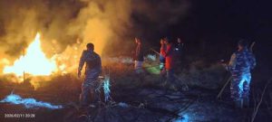 TNI AL, Dumai,- Pada Rabu malam 11 Februari 2026 sekitar pukul 19.00 WIB, kebakaran lahan kembali terjadi di wilayah Pesisir Riau. Api melanda area perkebunan kelapa sawit milik warga di Dusun Sejati Jaya, Kepenghuluan Sei Bakau, Kecamatan Sinaboi, Kabupaten Rokan Hilir. Peristiwa tersebut segera mendapat respons cepat dari Babinpotmar Pos TNI AL (Posal) Sinaboi bersama Babinkamtibmas Polsek Sinaboi serta masyarakat setempat bahu membahu melaksanakan upaya pemadaman guna mencegah kebakaran meluas lebih jauh.