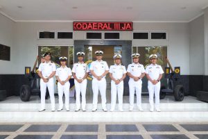 Komandan Kodaeral III, Laksamana Muda TNI Uki Prasetia, S.T., M.M. yang diwakili oleh Asisten Perencanaan Dankodaeral, Kolonel Laut (P) Nurulloh Zemi Prasetio, M.S.C. didampingi Kasatker Kodaeral menerima CC yang dipimpin oleh Atase Pertahanan India, Captain (N) Shiv Kumar yang didampingi Komandan INS Sunayna, Commander Siddarth Chaudary di lobby utama Makodaeral III, Selasa (21 April 2026).