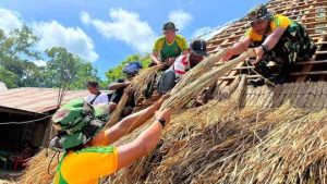 Kegiatan yang dilaksanakan ini melibatkan prajurit Pos Lookeu bersama masyarakat setempat dengan fokus pada tahap pemasangan atap berbahan alang-alang, salah satu komponen penting dalam struktur tradisional rumah adat. Proses pembangunan dilakukan secara gotong royong oleh personel Satgas, Ketua Suku Marianus Ulu, serta lebih dari 45 warga. Para prajurit turut membantu menyusun dan mengikat alang-alang agar kokoh, rapi, dan tetap sesuai kaidah adat yang berlaku. Kehadiran Satgas dalam kegiatan budaya ini bukan hanya mempercepat penyelesaian pembangunan, tetapi juga mempererat hubungan harmonis antara TNI dan masyarakat di wilayah perbatasan.