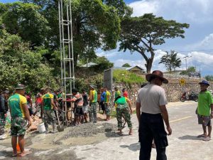 Satgas Pamtas RI–RDTL Sektor Barat Yonarhanud 2 Kostrad Laksanakan Karya Bakti Pengecoran Gereja di Desa Tubu