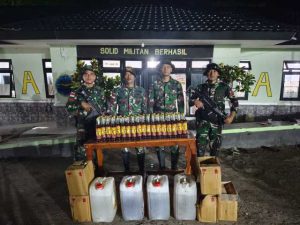 Sunkaen – Keberhasilan kembali dicapai oleh Satgas Pamtas RI-RDTL Sektor Barat Yonarhanud 2 Kostrad Pos Baen, dimana prajurit Pos Baen berhasil mengamankan BBM dan Miras Ilegal yang diduga akan dibawa secara illegal menuju Timor Leste di sekitar Desa Sunkaen, Kec. Bikomi Nilulat, Kab. TTU. Minggu (23/11)