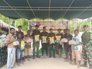 Natemnanu – Satgas Pamtas RI–RDTL Sektor Barat dari Yonarhanud 2 Kostrad Pos Oepoli Pantai melaksanakan kegiatan sosial dengan membagikan 150 paket sembako dan 150 paket snack kepada masyarakat yang membutuhkan di Desa Natemnanu Utara, Kecamatan Amfoang Timur, Kabupaten Kupang, Sabtu (18/04/2026).