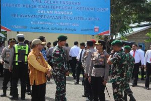 Kefamenanu – Dansatgas Pamtas RI–RDTL Sektor Barat Yonarhanud 2 Kostrad, Letkol Arh Endis Fahrul Rizal, S.Hub.Int., M.Sc., menghadiri Apel Gelar Pasukan Operasi Ketupat 2026 dalam rangka pengamanan perayaan Idul Fitri 1447 H yang dilaksanakan di Mapolres TTU, Kabupaten Timor Tengah Utara (TTU). Senin (16/03/2026).