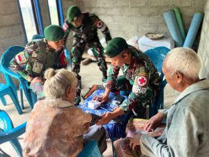 ‎Nino – Satgas Pamtas RI-RDTL Sektor Barat Yonarhanud 2 Kostrad Pos Nino menunjukkan aksi nyata dengan menggelar layanan Kesehatan Keliling bagi warga lanjut usia di Desa Nino, Kec. Bikomi Nilulat, Kab. TTU. Minggu (01/02/26).