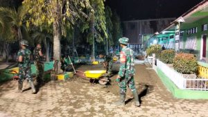 Adapun pekerjaan yang dilaksanakan meliputi pemasangan _paving block_ di lingkungan sekolah, perbaikan pagar, pengecatan atap bangunan, serta pembenahan plafon sejumlah ruang kelas yang rusak akibat banjir. Seluruh kegiatan dilakukan dengan semangat kebersamaan dan kerja sama lintas satuan.