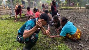 Dengan semangat gotong royong, suasana kebersamaan tampak hangat antara prajurit TNI dan warga. Kebersamaan tersebut mencerminkan hubungan yang harmonis di wilayah perbatasan.