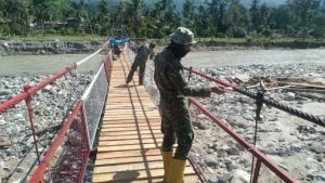 Percepatan pekerjaan dilakukan personel Kodim 0108/Aceh Tenggara guna memastikan jembatan dapat kembali difungsikan secara normal dalam waktu dekat. Infrastruktur sepanjang sekitar 150 meter dan lebar 1,2 meter tersebut membentang di atas aliran sungai dengan kedalaman kurang lebih dua meter, serta selama ini menjadi jalur vital bagi aktivitas ekonomi, pendidikan, dan sosial masyarakat.