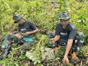 Sunsae – Satgas Pamtas RI-RDTL Sektor Barat Yonarhanud 2 Kostrad Pos Nelu membantu warga perbatasan memanen kacang tanah di Desa Sunsea, Kec. Naibenu, Kab. TTU. Jumat (10/04)