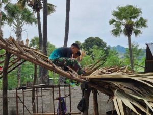 Wini — Satgas Pamtas RI–RDTL Sektor Barat Yonarhanud 2 Kostrad Pos Wini kembali menunjukkan kepeduliannya kepada masyarakat perbatasan melalui kegiatan karya bakti pembangunan Rumah salah satu warga di Desa Wini, Kec. Insana Utara, Kab. Timor Tengah Utara. Kamis (04/10)