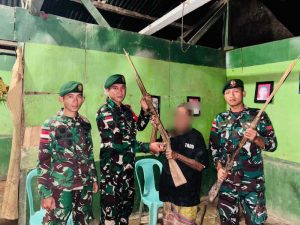 Wujud Kepercayaan Masyarakat, Satgas Pamtas Yonarhanud 2 Kostrad Terima Dua Pucuk Senjata