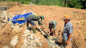 Dalam pelaksanaannya, personel Satgas Pamtas bersama masyarakat melaksanakan berbagai tahapan pekerjaan, mulai dari pemasangan tali, pengadukan semen, penyusunan batu, pemasangan kawat, hingga pemecahan batu menjadi kerikil. Kegiatan ini mencerminkan semangat gotong royong antara TNI dan masyarakat setempat.