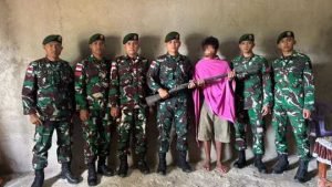 Belu, NTT – Satgas Pamtas RI–RDTL Sektor Timur Yonarmed 12 Kostrad melalui Pos Nananoe kembali menunjukkan keberhasilan dalam menjaga stabilitas keamanan wilayah perbatasan dengan menerima penyerahan 1 (satu) pucuk senjata api jenis Springfield dari warga. Penyerahan tersebut dilakukan secara sukarela oleh Bapak BL (50), warga Dusun Makokon, Desa Nananoe, Kecamatan Nanaet Dubesi, pada Minggu (26/4/2026), sebagai bentuk kepercayaan masyarakat terhadap kehadiran Satgas di wilayah binaan.