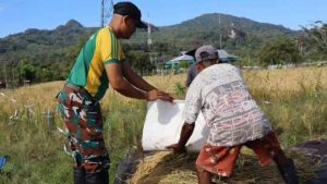 Dengan semangat kebersamaan, para prajurit turun langsung ke sawah, mulai dari memotong hingga mengumpulkan padi. Kegiatan ini tidak hanya mempercepat proses panen, tetapi juga memberikan motivasi dan semangat bagi para petani dalam menjalankan aktivitas pertanian.
