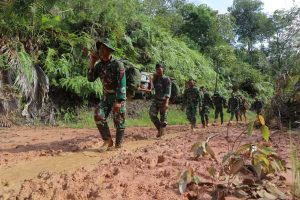 Tapanuli Tengah, tniad.mil.id – Sebanyak 40 personel Yonif 122/TS dan Yonif 125/Simbisa melaksanakan patroli pendorongan logistik menuju Dusun Lapan Lombu, Kelurahan Nauli, Kecamatan Sitahuis, Kabupaten Tapanuli Tengah, pada Sabtu (6/12/2025). Patroli ini bertujuan menilai kondisi wilayah pascabencana sekaligus membuka kembali akses distribusi bantuan bagi masyarakat terdampak.