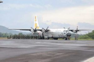 Yonif 501 Kostrad menggunakan pesawat C-130 Hercules tiba di Bandara Depati Amir, Bangka Belitung, untuk mengikuti Latihan Komando Gabungan (Kogab) TNI. Latihan ini digelar guna meningkatkan kesiapsiagaan TNI dalam menghadapi berbagai ancaman serta menjaga keamanan wilayah strategis di kawasan Bandara Depati Amir. Selasa (18/11/2025).